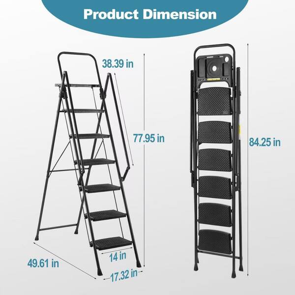 5.6 ft. Black Steel Folding 6-Step Ladder (9.6 ft. Reach), 330 lbs. Load Capacity