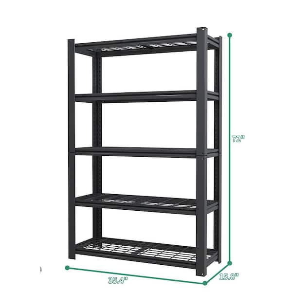 5-Tiers Metal Adjustable Heavy Duty Garage Storage Shelving Unit in Black (35.4 in. W x 72 in. H x 15.8 in. D)