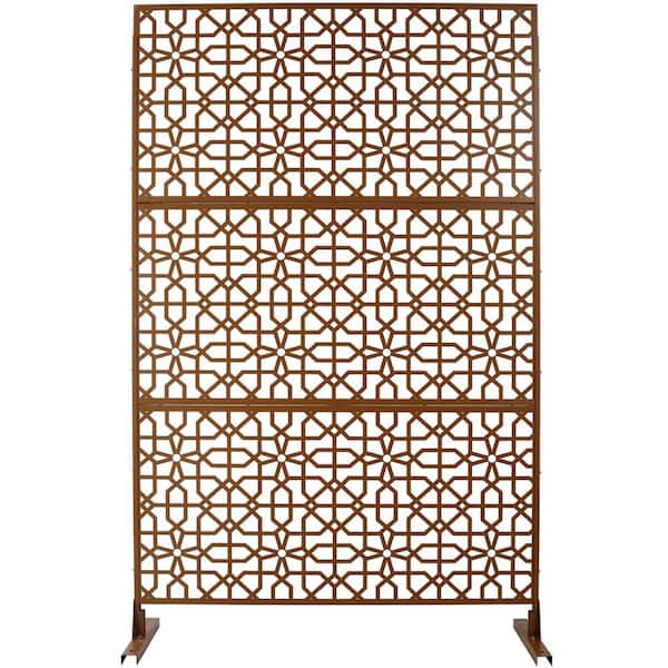 6.3 ft. x 4 ft. Brown Steel Freestanding Flat Flat Top Decorative Privacy Screen Metal Fence Panel
