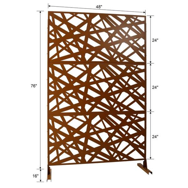 6.3 ft. x 4 ft. Brown Steel Freestanding Flat Flat Top Decorative Privacy Screen Metal Fence Panel