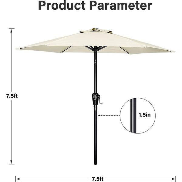 7.5 ft. Steel Market Tilt Patio Umbrella in Beige for Garden, Deck, Backyard, Pool
