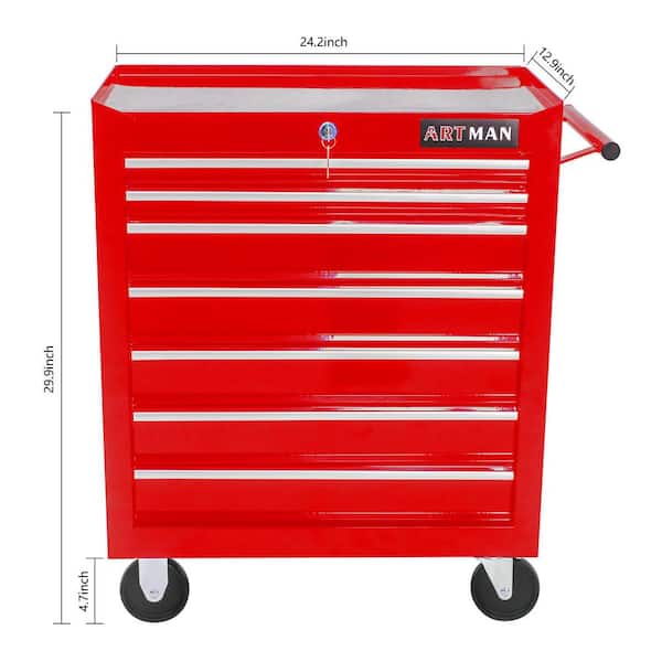 7-Tier Metal 4-Wheeled Multi-Functional Cart in Red with Handle