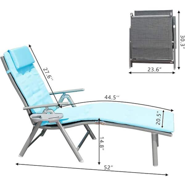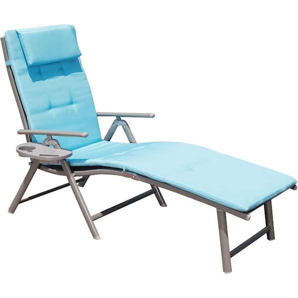 Blue Metal Folding Outdoor Chaise Lounge with Blue Cushion
