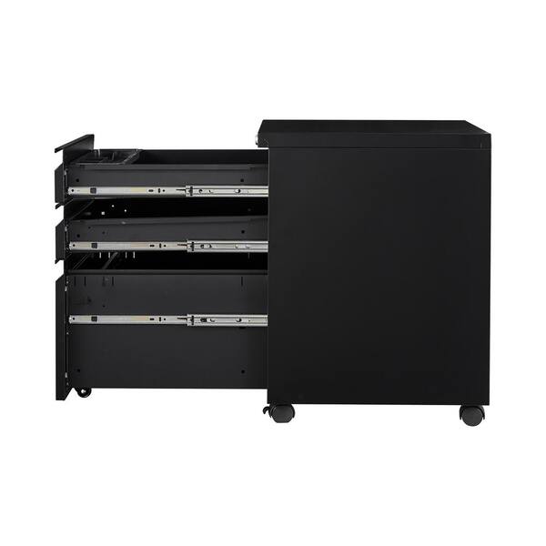 Modern 15.35 in. D x 19.69 in. W x 24.41 in. H Black Metal File Cabinet with 3 Drawers