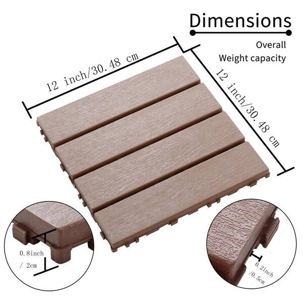 Outdoor 1 ft. x 1 ft. Composite Interlocking Tile Deck Tile in Brown (44 Per Box)
