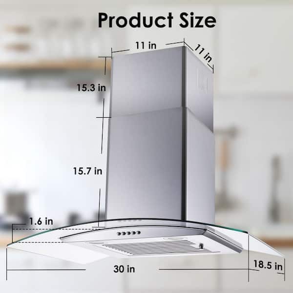 Silver 30 in. 450 CFM Smart Ducted Insert Range Hood in Stainless Steel with Push Button and Removable Baffle Filters