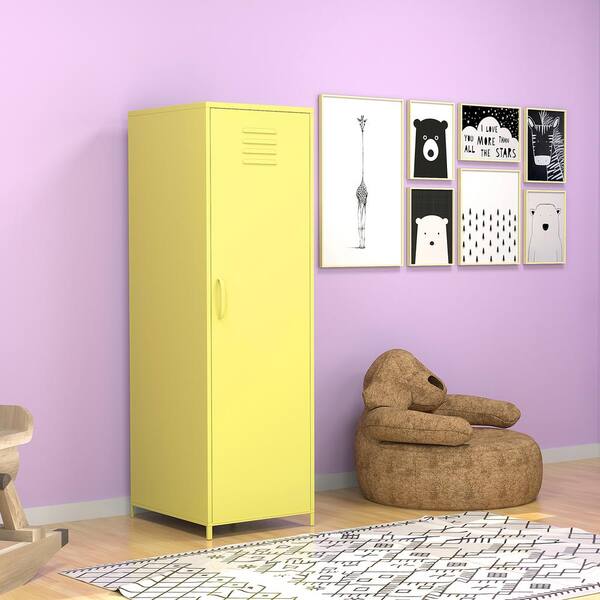 Yellow Kid Armoire with 1-Door 3-Shelf and Lateral Rack 50.78 in. x 18.11 in. x 14.96 in.