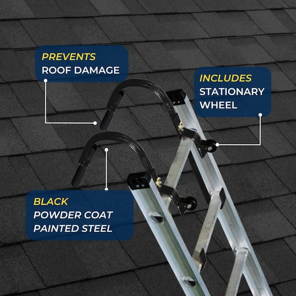 2-Pack Heavy Duty Powder-Coat Painted Black Steel Ladder Roof Hook with Wheel