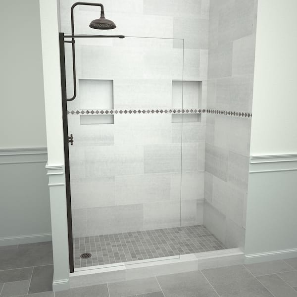 5400 Series 60 in. W x 76 in. H Semi-Frameless Fixed Shower Door in Oil Rubbed Bronze with Clear Glass without Handle