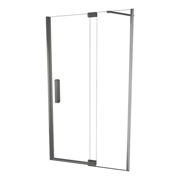Redi Swing 5200 41 in. W x 76 in. H Semi-Frameless Pivot Shower Door in Brushed Nickel with Handle and Clear Glass