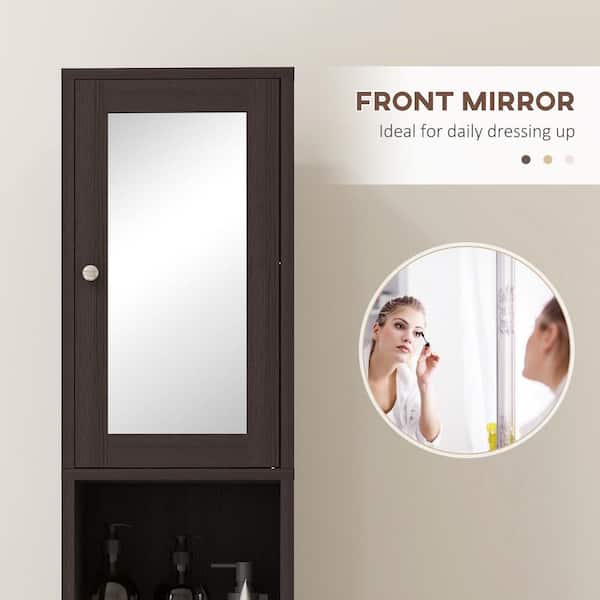 12 in. W x 11 in. D x 71 in. H Coffee Wooden Freestanding Linen Cabinet Tower Cabinet w/ Mirror and Adjustable Shelves