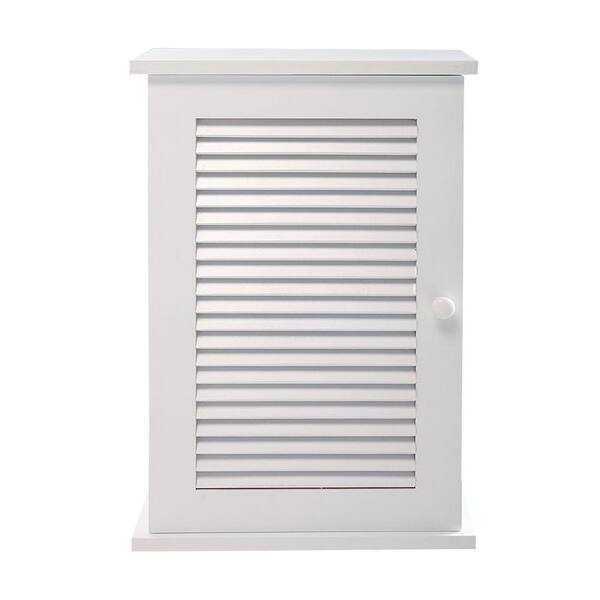 13.8 in. W x 21 in. H Small Rectangular White MDF Surface Mount Medicine Cabinet without Mirror with Louvered Door
