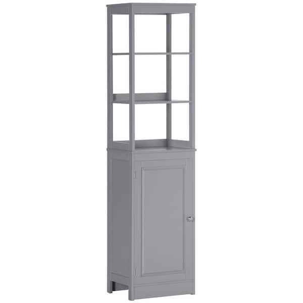 15.75 in. W x 12.5 in. D x 63 in. H Gray MDF Freestanding Linen Cabinet with 3-Tier Open Shelf and Door
