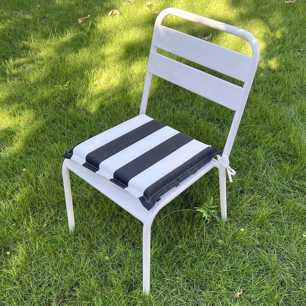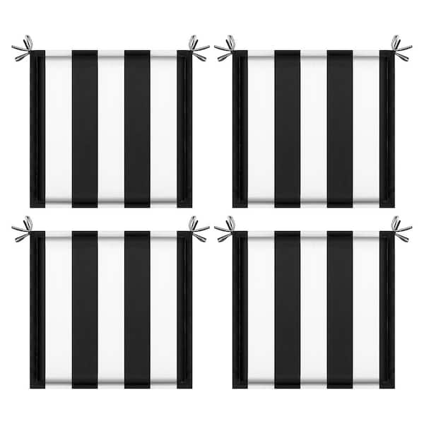 15 in. x 15 in. Black White Striped Square Fabric Outdoor Seat Cushion with Ties (4-Pack)