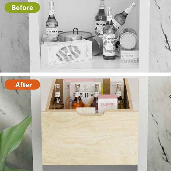 16.5 in. W Pull Out Cabinet Organizer 8 in. H Drawer with Full Extension Rail Slide Pull Out for Kitchen Pantry-Natural