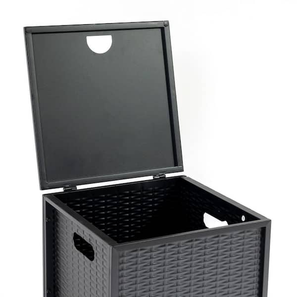 16 in. Iron Imitation Woven Rattan Propane Tank Cover, Outdoor Side Table with Side Handles and Adjustable Legs