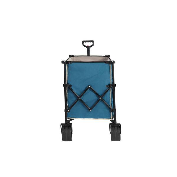 17 cu. ft. Steel Garden Cart, Foldable Wagon Carts with 220lbs Capacity, Big All-Terrain Wheel&Drink Holder in Blue