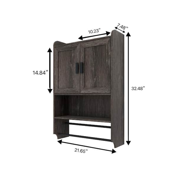 21.65 in. W x 7.48 in. D x 32.48 in. H Bathroom Storage Wall Cabinet with Adjustable Shelf, Towel Bar in Gray