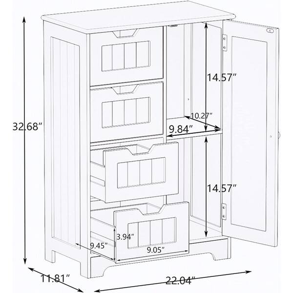 22.04 in. W x 11.81 in. D x 32.68 in. H White MDF Freestanding Linen Cabinet with Adjustable Shelves, 4 Drawers