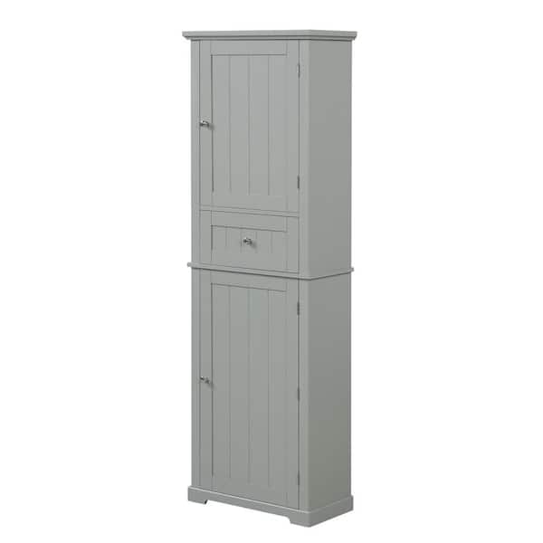 22 in. W x 11 in. D x 67 in. H MDF Gray Linen Cabinet, Tall Bathroom Storage Cabinet with Drawer and Adjustable Shelf