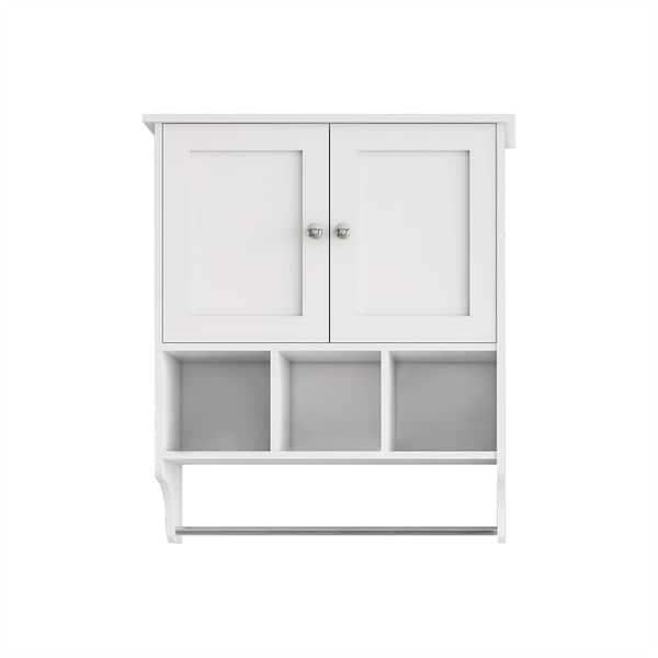 24 in. W x 27.5 in. H Small Rectangular White Wood Surface Mount Medicine Cabinet without Mirror with Towel Rack