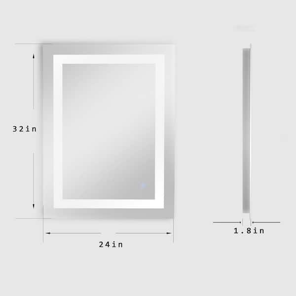 24 in. W x 32 in. H Large Rectangular Aluminum Framed Anti-Fog Wall Bathroom Vanity Mirror in Silver