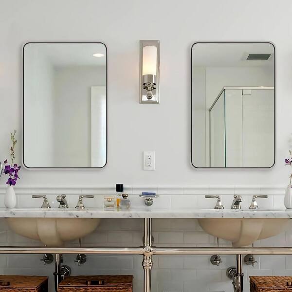 24 in. W x 36 in. H Large Rectangular Aluminium Framed Wall Bathroom Vanity Mirror in Silver with 4 mm HD Glass