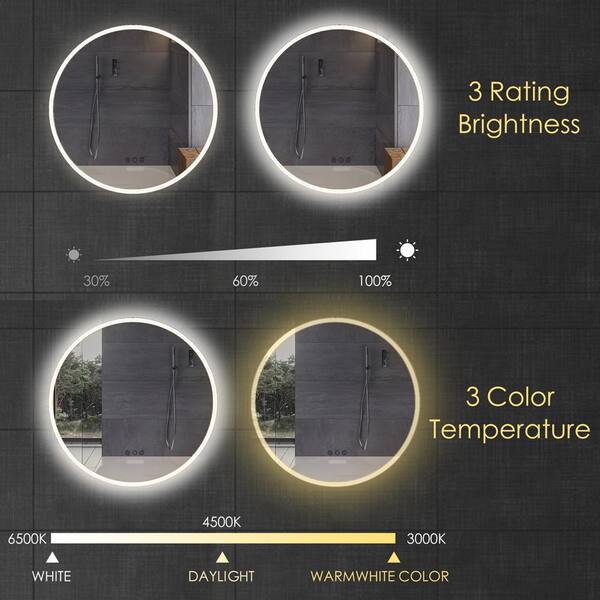26 in. W x 26 in. H Round Frameless LED, Anti-Fog and Dimmer Function Wall Bathroom Vanity Mirror in Silver
