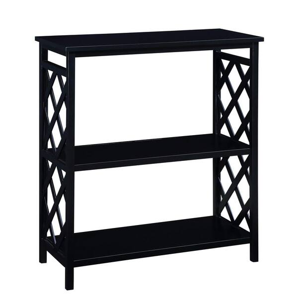 3-Tier Kitchen Pantry with Storage Shelves, Console Table, Open Bookshelf with Solid Wood Legs for Living Room, Black