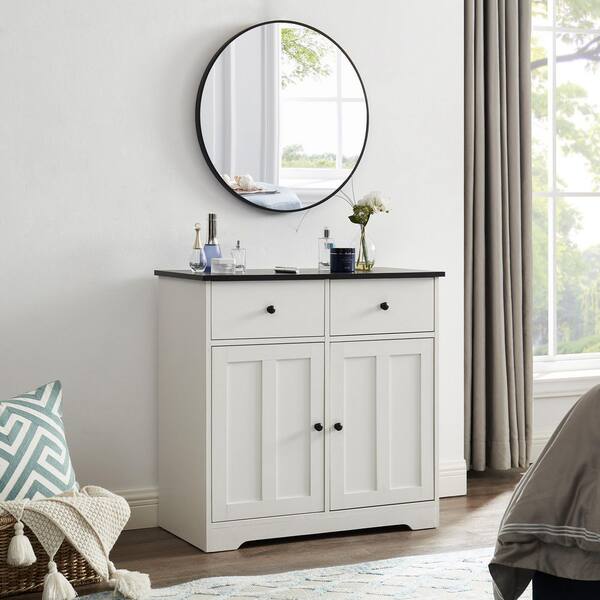 31.5 in. W x 15.4 in. D x 31 in. H White MDF Ready to Assemble Floor Pantry Cabinet with 2-Drawers
