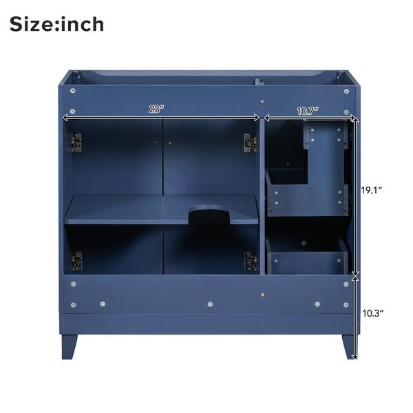 35.4 in. W x 17.8 in. D x 33.3 in. H Bath Vanity Cabinet without Top with 2 Soft Close Doors and Drawers in Navy Blue