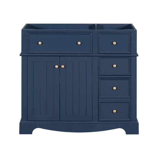 35.4 in. Wood Bath Vanity Cabinet without Top, Bathroom Storage Cabinet with 3-Drawers and Adjustable Shelf in Blue