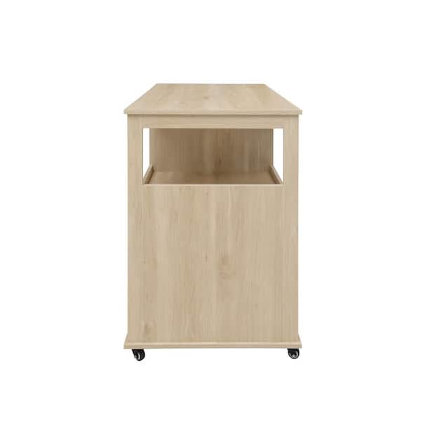 39.37 in. Natural Wood Kitchen Cart, Rolling Kitchen Island with Storage Drawer, Wine Rack and Open Shelves