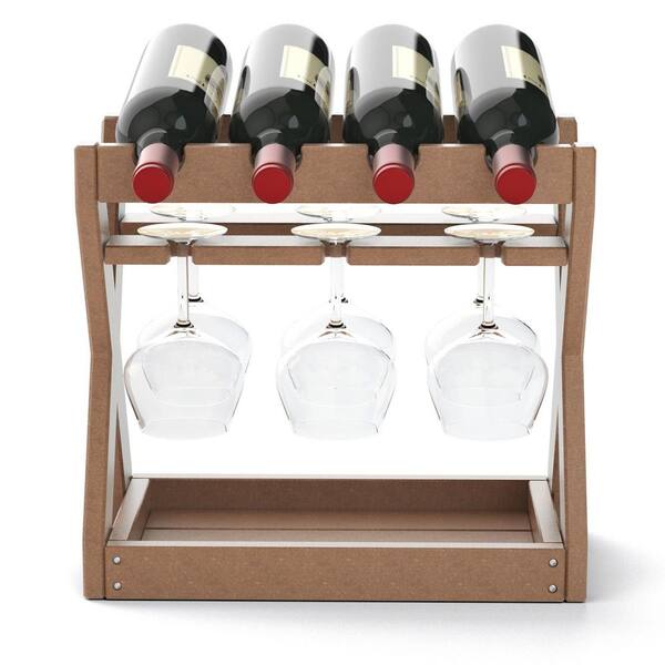 4-Bottle Brown Wine Rack Yellowish HDPE Countertop with Cup Holders