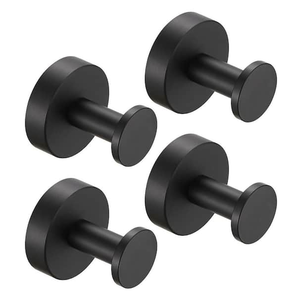 4-Pack Black Aluminum Wall-Mounted Knob Robe/Towel Hook, Wall Hanging Hook with Round Base for Bathroom Kitchen