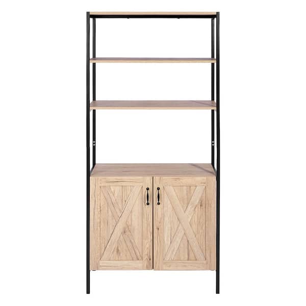 4-Shelf Oak Rustic 2-Door Cabinet with Metal Frame