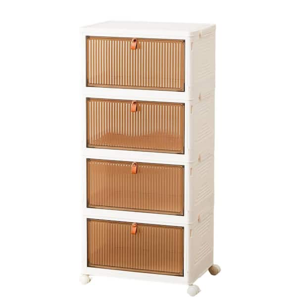 4 Tier Stackable Plastic Storage Bins with Lid - 23QT Foldable Organizers with Magnetic Doors and Lockable Wheels-White