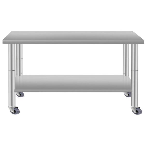 48 in.x24 in. Commercial Work Table, Stainless Steel Kitchen Prep Table w/ Under Shelf & Wheels for Restaurant in Silver