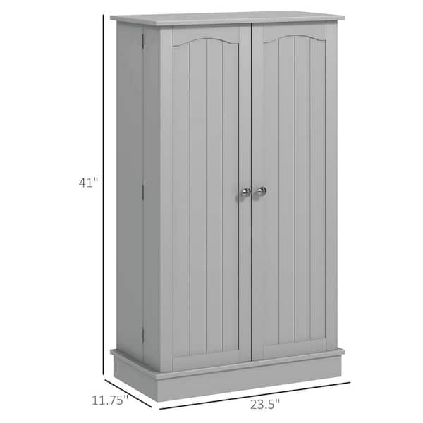 5-Tier Gray Wood Pantry Cabinet, Freestanding Kitchen Storage Cupboard with 2-Doors and Adjustable Shelves