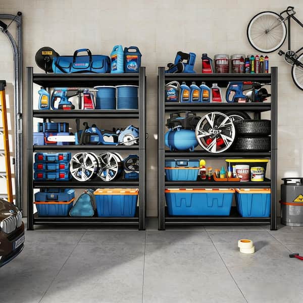 5 Tier Storage Rack with Adjustable Height Shelving for Warehouse and Supermarket and Basement Storage in Black
