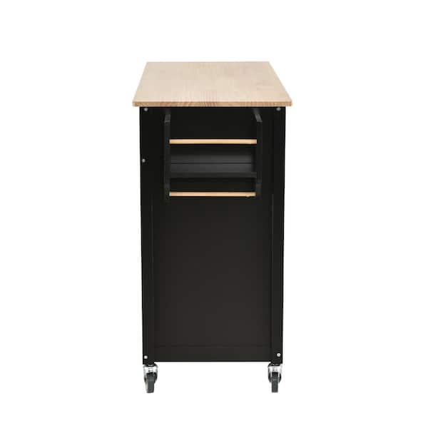 54.3 in. W Black Kitchen Island Rolling Cart with Solid Wood Top and Locking Wheel 4-Door Cabinet and 2-Drawers