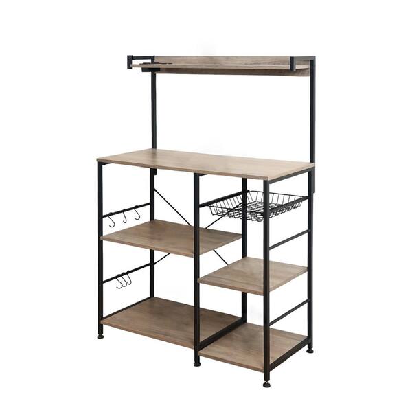 6-Shelf Antique Gray Particle Board Microwave Oven Stand with 6 S-Hooks