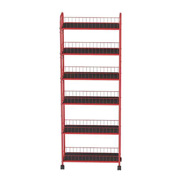 6-Shelf Red Metal Slim Storage Cart, Mobile Wire Rack Shelving Unit with Baskets (23 in. W x 10 in. D x 61 in. H)
