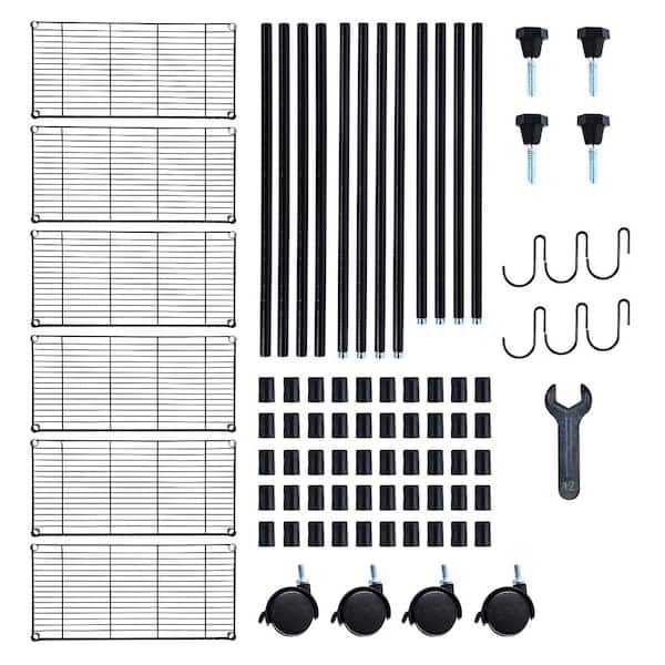 6 Tier Heavy Duty Shelving with Wheels, Hanging Hooks, Wire Shelving, Adjustable Storage Units in Black