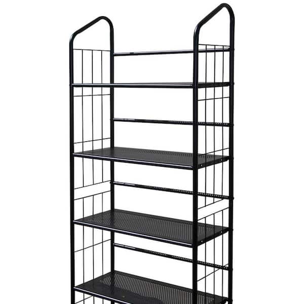 64" Tall 5-Tier Corner Metal Kitchen Pantry, Bookcase / Book Shelf, Black