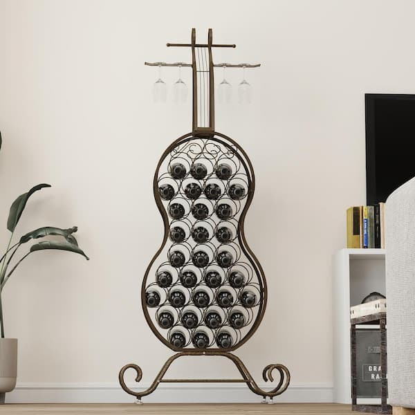 Cello Shape Wine Bakers Rack with Storage Bottle, Wine Storage Home Bar for Liquor and Wine, Organizer-Brown