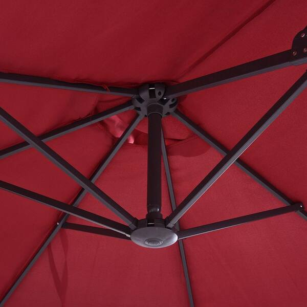 Extra Large 15 ft. Patio Umbrella, Double-Sided Outdoor Umbrella with Crank Handle and Air Vents in Wine Red