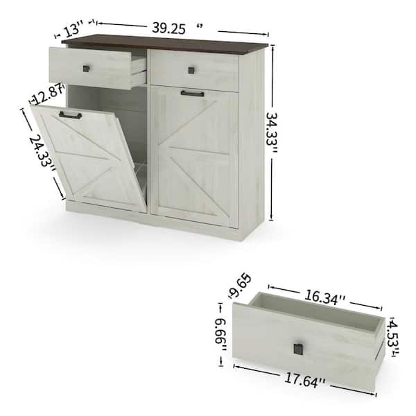 Farmhouse Double Tilt Out Trash Cabinet for 20 Gal. Trash Cans, Free Standing Recycling Cabinet in Antique White