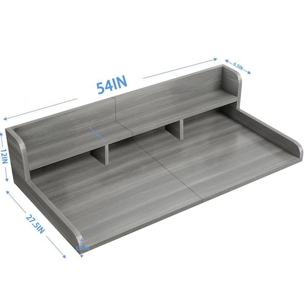 Grey Stripe Wood Washer Dryer Countertop, Storage Shelf with Rounded Edge Rails for Kitchen Laundry Room Organization