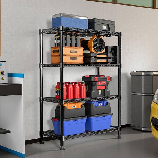 Household Storage Rack, Adjustable Display Rack, Basement Balcony Storage Rack, Carbon Steel in Black